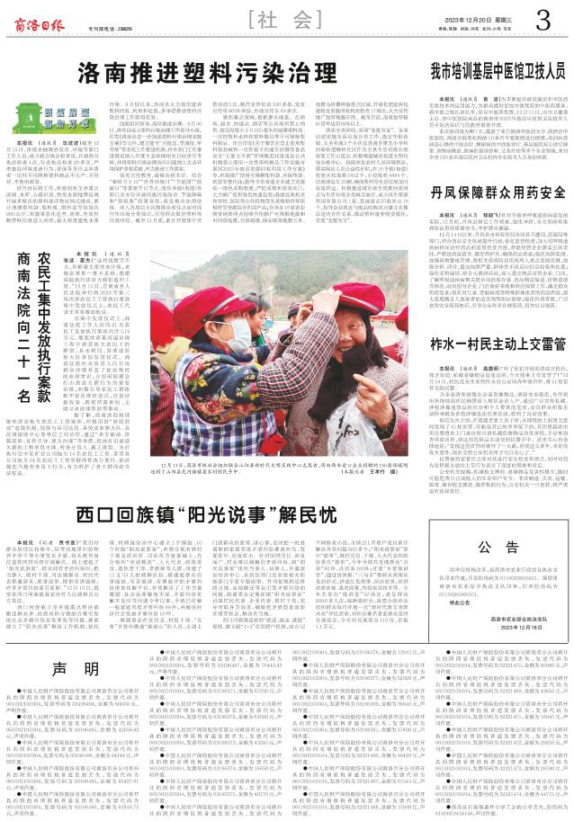 ●中国人民财产保险股份有限公司商洛市分公司将开具的陕西省增值税普通发票丢失,发票代码为061002100304,发票号码为03196496,金额为24144元,声明作废。