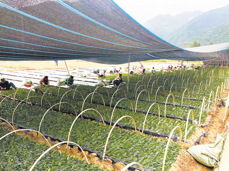 陕西秦岭清雅茶业有限公司的工人在扦插育苗