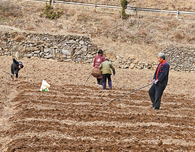 3月12日,在商南县十里坪镇供港蔬菜基地,群众正有序开展春耕备种,为新一轮土豆播种作准备。 (本报通讯员 薛 源 摄)