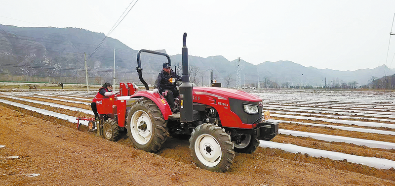 3月10日,洛南县保安镇庙底村启用农业机械,人机合作种植土豆。