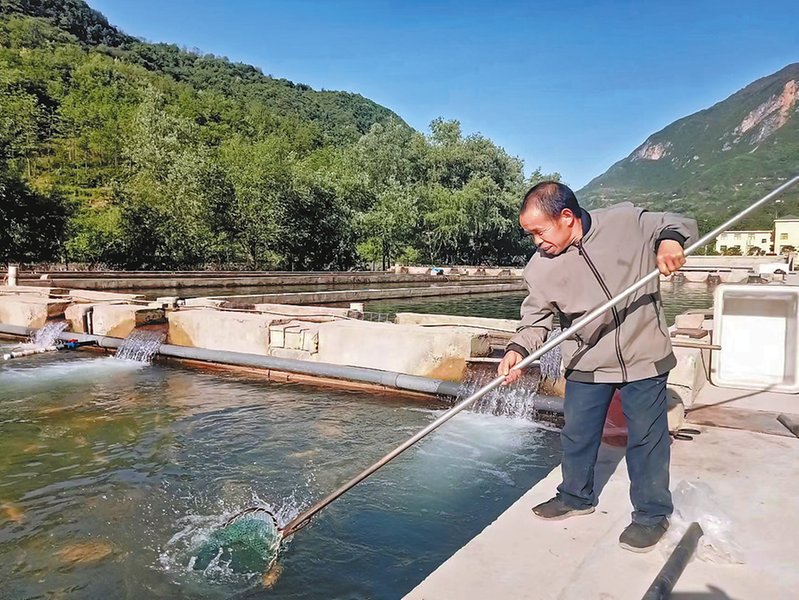 “我们村子依山傍水,风景优美,但是藏在大山深处,经济一直发展缓慢。近年来,我们围绕资源入股,依据地理优势,大力发展特色渔业和生态农业,不仅壮大了村级集体经济,还找到了村企联营带动群众增收致富的好法子。”渔坪村党支部书记张福成介绍,目前,冷水鱼养殖基地占地8亩,有金鳟、虹鳟、三文鱼、中华鲟4种鱼类,存池40多万尾,由于水质好,成鱼畅销西安、商洛、安康等地,2023年产值200多万元,利润70多万元,带动周边群众从事冷水鱼养殖30多人。