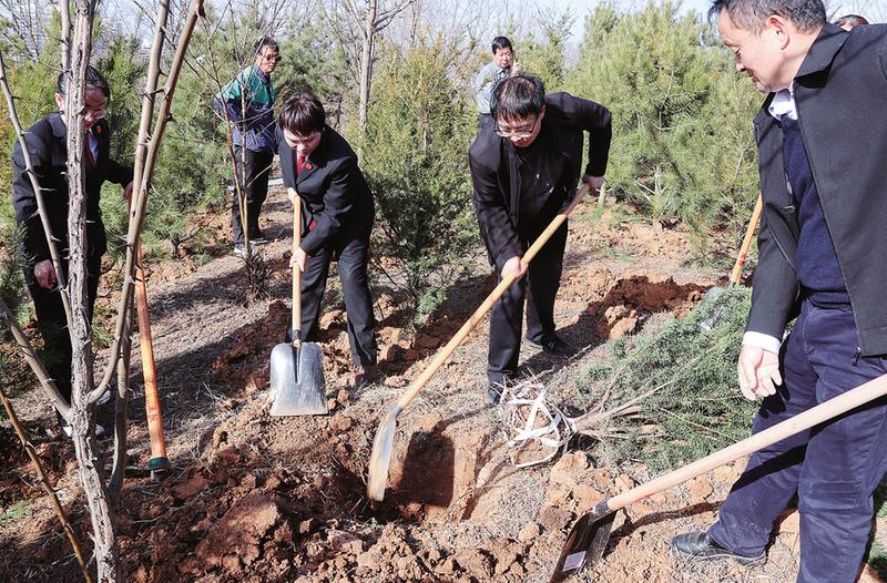 3月11日,商洛市法检系统干警共同在“秦岭红豆杉”司法保护基地开展义务植树活动。