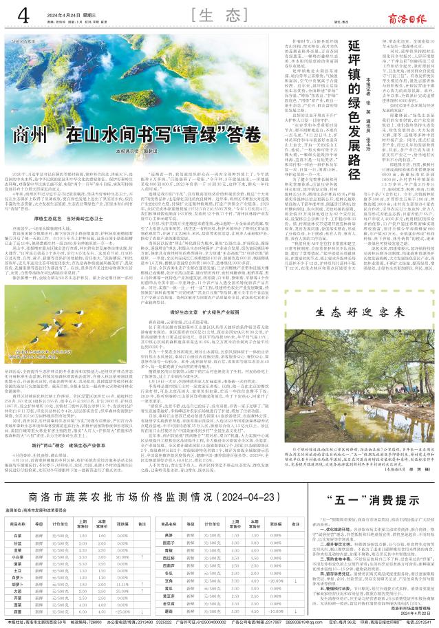 商洛市蔬菜农批市场价格监测情况(2024-04-23)