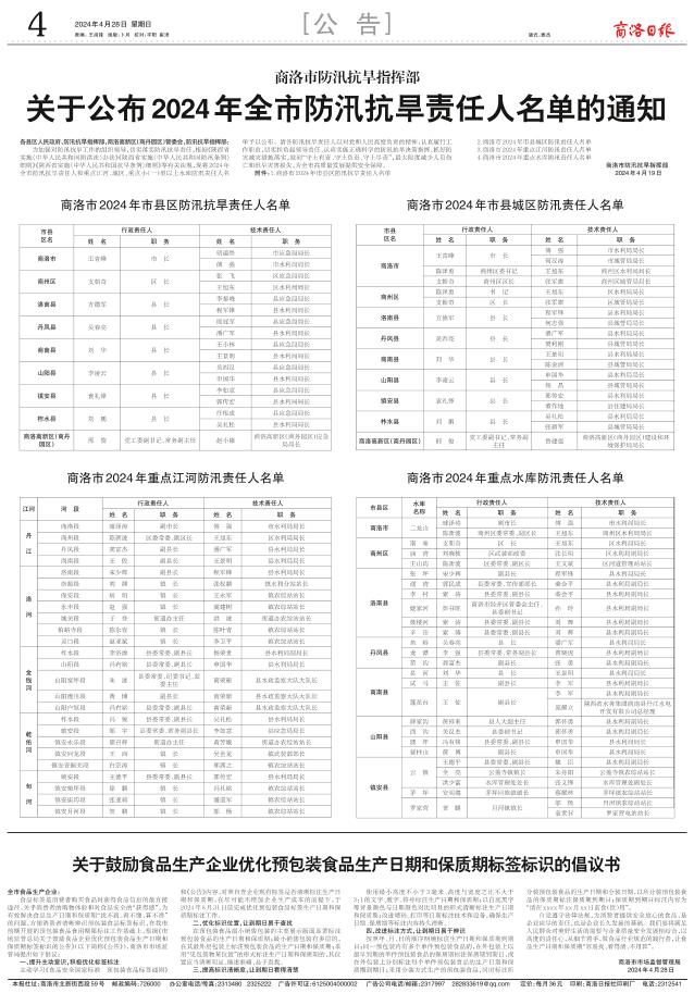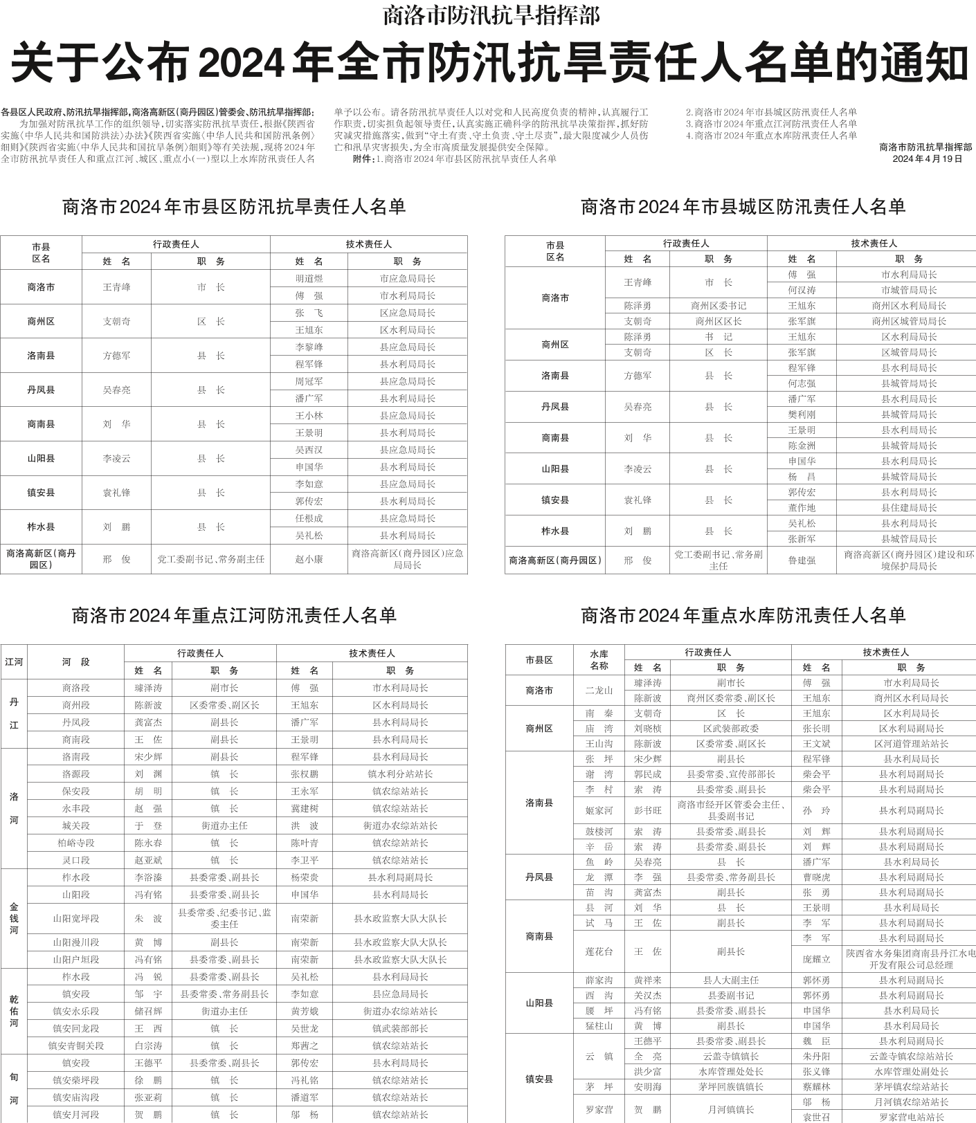 关于公布2024年全市防汛抗旱责任人名单的通知