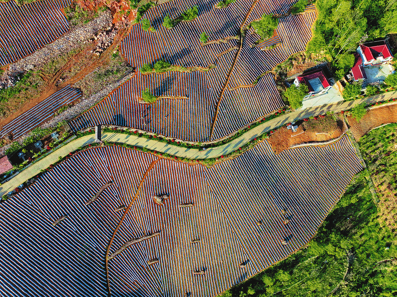 4月25日,镇安县永乐街道安山村海棠山千亩烤烟基地,村民们正忙着栽植烤烟。据该村党支部书记介绍,烤烟是村里的支柱产业,不仅为农户带来了经济收益,农旅融合的烤烟观光乡村游也推动了村里服务产业的发展。(本报通讯员 杨建东 摄)