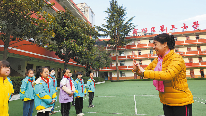 4月18日下午,在商州区第三小学,一场花鼓戏表演正在进行。商洛市民间文艺家协会主席郝忠锋和丹曲艺术团的田敏英老师正在对孩子们做“唱念做打”戏曲基本功的辅导。