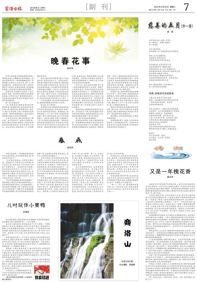 春花烂漫,此花谢了彼花开,一忽儿就到了晚春。好似昨天刚刚显出鹅黄桃红的春,今早便长成了深翠朱颜的样子。行走在此时的春天里,忍不住想起几桩与花有关的事情来。