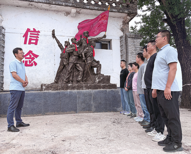 4月29日,商南县委县政府督查办在青山镇文碧峰开展党纪学习教育实践活动。全体党员干部踏寻峥嵘岁月,追忆奋斗历程,学习《中国共产党纪律处分条例》,聆听党纪专题党课。 (本报通讯员 胡朝斌 摄)