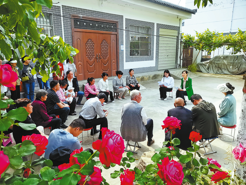5月8日,在丹凤县龙驹寨街道江湾村的院落里,一场别开生面的“乡音党课”在这里火热开讲。丹凤县城市管理局驻村第一书记孙琳以学习运用“千万工程”经验为主题,向群众宣讲中央一号文件精神及丹凤县相关惠民税收政策,积极调动广大群众参与乡村治理的积极性。 (本报通讯员 刘振兴 摄)