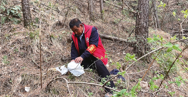 近几年,商山修了登山台阶后,登高休闲的人越来越多,同时,防火压力也随之增大。姜拴劳为了做好山林防火,他在林区增加护林防护标识密度,每到春冬季加大巡山力度,逢人便提示林区禁止用火,想方设法地保护林区的防火安全。