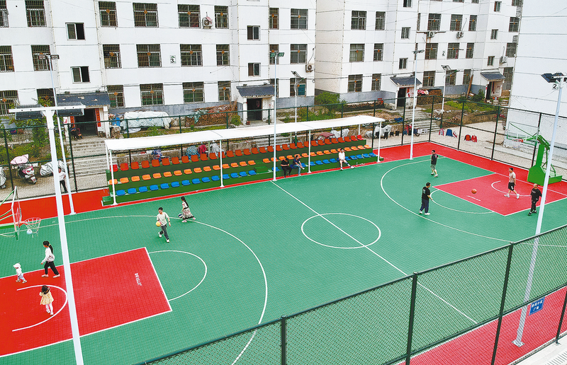 十里坪社区党支部书记曹宗仁介绍,去年,社区修建了游步道,群众闲暇之余跑步健身、散步聊天,体验感很好。今年,为了更好地丰富群众的业余生活,社区将运动场建设作为2024年承诺的10件实事之一,规划建设悬浮式篮球场,配套羽毛球、乒乓球标准场地,进一步完善基础设施建设,夯实乡村振兴发展“主阵地”。其中,篮球场位于人员居住密集的移民小区广场,场地和外围的环形跑道浑然一体,是广大群众茶余饭后的主要休闲场所。