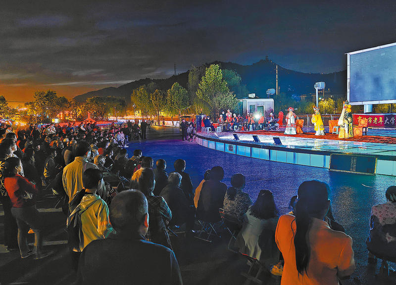 5月11日傍晚,群众在南秦河生态公园津津有味地观看戏曲演出。