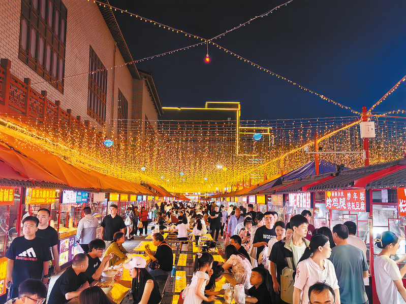 5月12日晚,在充满了烟火气的商州夜市,暖黄的灯光下香味扑鼻的美食给予人们心灵慰藉,点燃了味觉的狂欢。