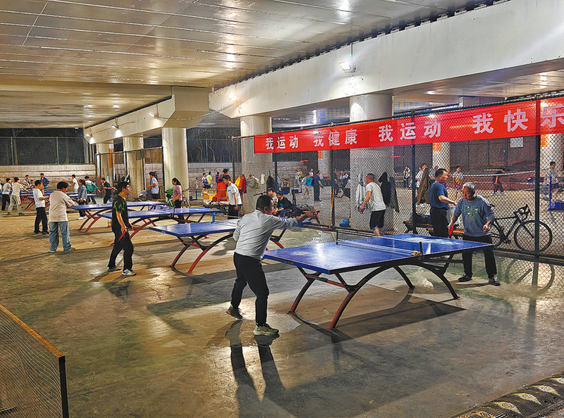 5月11日傍晚,商州区立交桥下正在运动健身的市民。