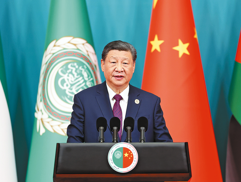 习近平指出,中国和中国人民同阿拉伯国家和人民的友谊,缘自丝绸古道上的友好往来、争取民族解放时的并肩战斗、国家建设进程中的合作共赢。新世纪以来,中阿关系不断迈上新台阶。2022年12月,我赴沙特利雅得出席首届中阿峰会,中阿双方一致同意全力构建面向新时代的中阿命运共同体。中方愿同阿方发挥好峰会战略引领作用,持续推动中阿关系跨越式发展。中方将于2026年在中国举办第二届中阿峰会,相信这将成为中阿关系又一座里程碑。