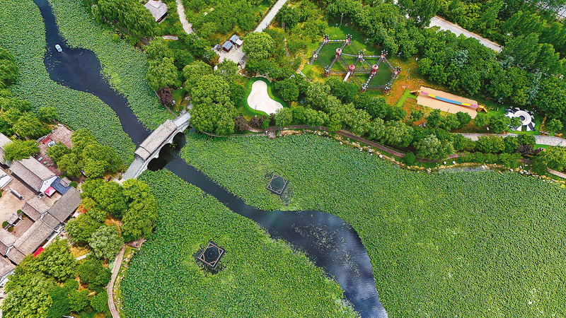 仲夏时节,丹凤县棣花古镇千亩荷塘绿意涌动。