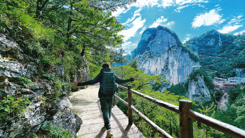 山阳县天竺山绿意盎然,游客沉浸在美景之中。