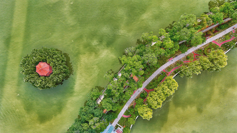 夏日的仙娥湖犹如一块碧玉镶嵌在青山之间