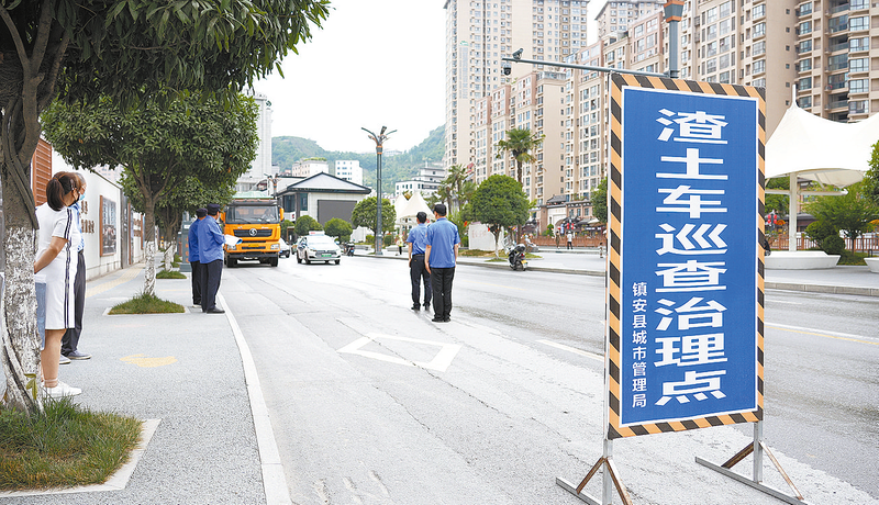 连日来,镇安县重拳出击、多点发力,扎实开展城区建筑渣土清运秩序专项整治,严厉打击渣土车抛冒滴漏污染路面等违规行为,进一步消除路面安全隐患,提升城市环境品质。 (本报通讯员 李 翔 摄)