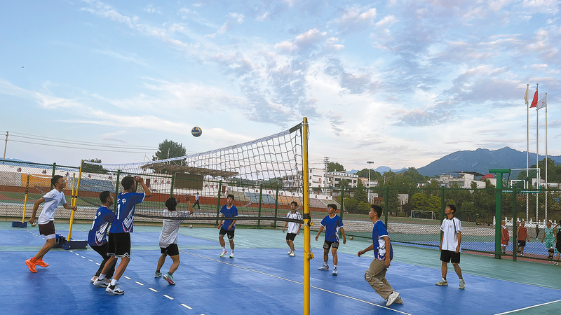 今年以来,山阳县投入资金改造排球场地70个,配备运动器材1000多件,开展排球、气排球赛事150多场次,参与学校37所2000多人。图为日前山阳县第三中学学生在开展常态化排球训练。 (本报通讯员 黄玉环 摄)