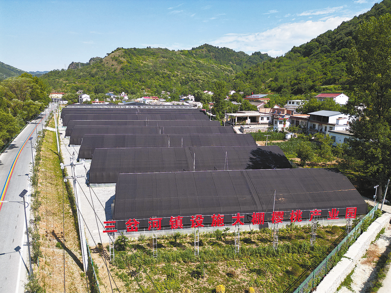 6月14日,沿着312国道走进三岔河镇,只见宽阔的“彩虹公路”上,不时有游客停下来在路边打卡。七星村的“北斗七星”民宿集群建设如火如荼,18个樱桃大棚星罗棋布,错落有致的农家小院在绿树掩映下书写着其乐融融的幸福生活。