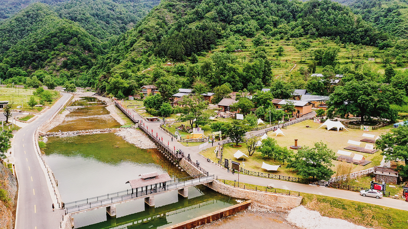 仲夏时节,位于秦岭深处的洛南县保安镇北斗村,群山披绿,小溪潺潺,石头风铃、卡通秋千别具一格,人工沙滩、土坯民宿散发着浓郁的乡愁味道,前来度假避暑的游客络绎不绝。