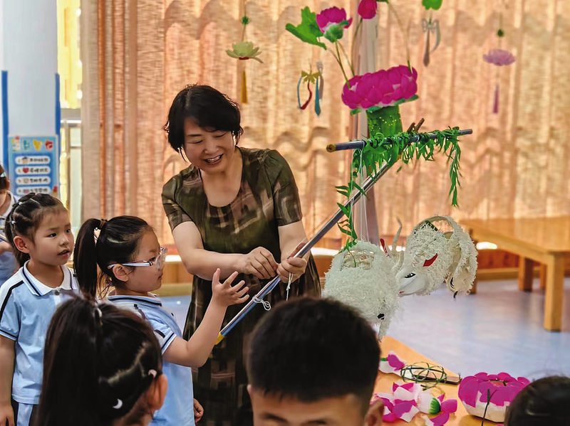在商州,小猫、小马、小兔、小狮、小猴等造型的泥哨统称“狗娃咪”。东龙山“狗娃咪”流传数百年,不仅是一种儿童玩具,更是一种民间工艺品,受到人们的喜爱。当日,东龙山“狗娃咪”代表性传承人祝乐给孩子们展示了各种各样“狗娃咪”作品,演示了匠心独运的制作过程。花灯传承人雷美丽通过“商州传统花灯工艺介绍”“习俗文化问答”“花灯制作”3个环节,面对面地传授传统技艺,让小朋友们在手工实践中感受传统文化的魅力。在老师的悉心指导下,孩子们小心翼翼地进行剪裁、折叠、粘贴,充分利用现有的材料对花灯进行加工装饰,使初具骨架造型的花灯披上了五彩斑斓的丝绸,不一会儿,一个个独具特色的花灯展现在大家眼前。通过与孩子们进行面对面互动,手把手传授非遗技艺,让孩子们化身为“小小非遗继承人”。