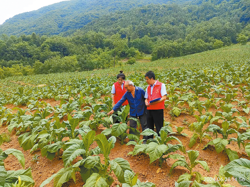 近日,镇安县气象局党员干部职工赴米粮镇联盟村万亩烤烟种植基地开展志愿者助农服务活动。志愿者结合近期气候特点向种植户科普了农业气象信息,提醒烤烟种植户关注气象服务预报预警信息,科学做好烟田管理工作。