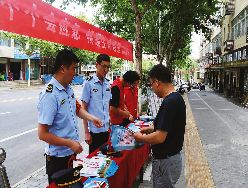 为切实做好“安全宣传月”工作,日前,市公路局茶房超限检测站联合丹凤公路段、商丹管理所组织开展安全咨询活动,向市民宣传应急疏散知识与技能,增强公众应对突发事件的应急避险能力。 (本报通讯员 刘丹玲 摄)