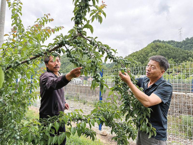 近日,丹凤县铁峪铺镇中心村15亩脆李迎来了成熟期,据悉,该村通过引入优良品种,科学管理,让村里的水果产业成为村民增收致富的新路径。 (本报记者 谢 非 摄)