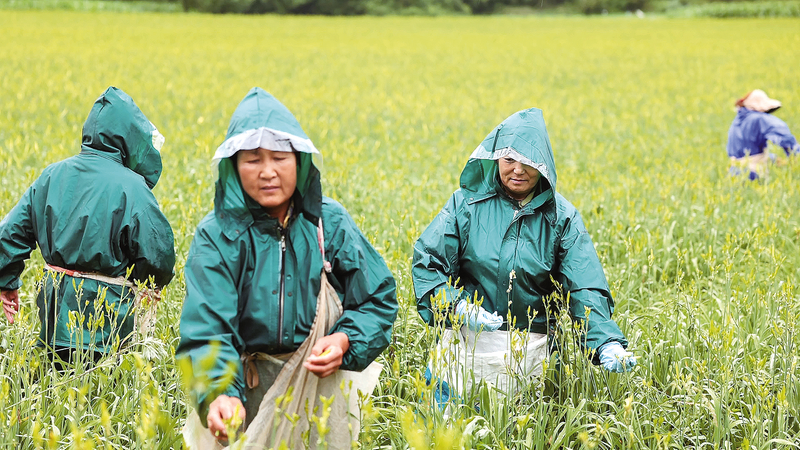 7月9日,群众在洛南县寺耳镇田门村的基地采摘黄花菜。据了解,田门村种植黄花菜130亩,目前已进入盛花期,每天有30多名群众采摘黄花菜务工增收。 (本报记者 杨 鑫 摄)
