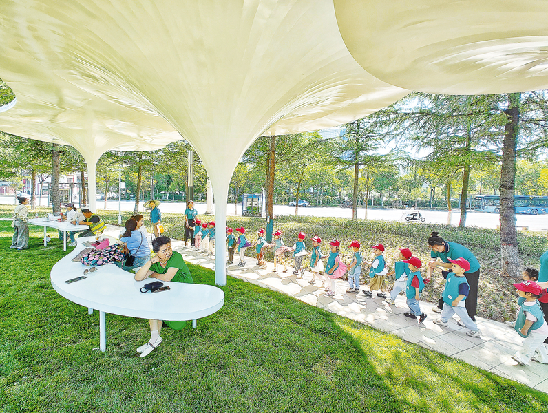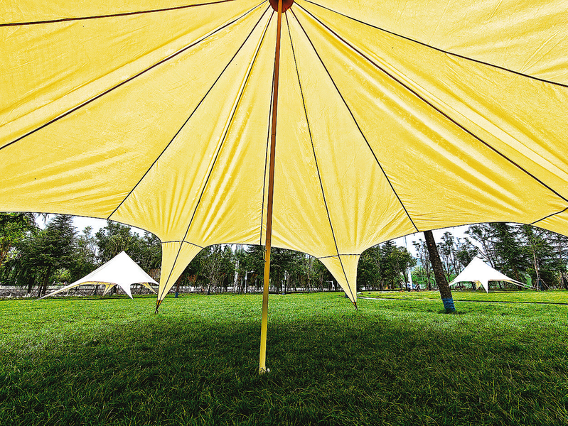 商州群众运动公园草坪上的遮阳帐篷成为一大亮点