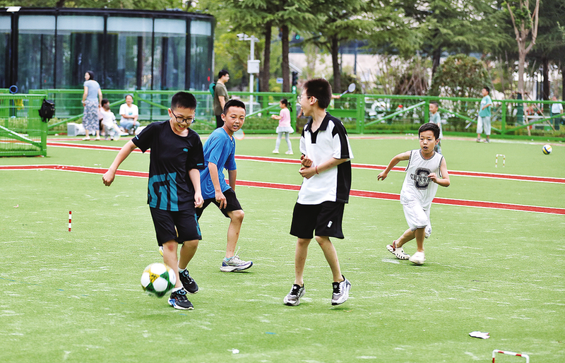 “哇!太好玩啦!妈妈,快过来看呀!”7月7日,市民罗女士带着5岁的双胞胎儿女在新建成的商州群众运动公园游玩时,两个孩子被眼前新建的游乐设施所吸引:公园的攀爬架上,孩子们勇于攀登,嬉笑声不断;球场上,传球、射门,孩子们化身足球小将,追逐声此起彼伏;长廊下,休闲、聊天的市民三五成群,往来的市民一拨接一拨……