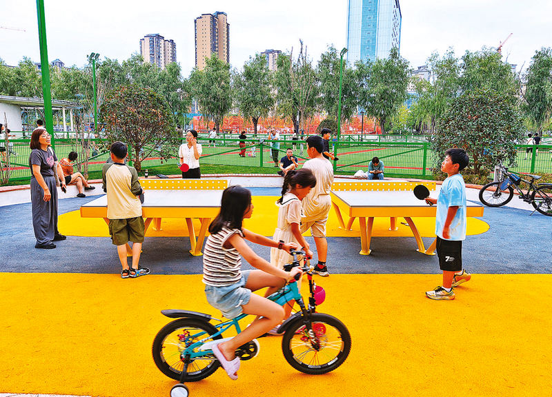 全民运动齐参与,筑梦健康新时代。随着生活节奏的加快,人们对于自身的健康状态愈发重视,全民健身更是成为一种社会潮流,越来越多的人开始参与其中,享受运动带来的健康和快乐。位于商洛市体育运动中心对面,历时3个多月工期,总占地面积约132亩的商州首个群众运动公园,在7月1日向市民开放。节假日、茶余饭后,居住在周围的群众迫不及待地和家人一同感受运动公园带来的快乐。罗女士告诉记者:“我住在江南世纪城小区,虽然出门就是公园,但这个新开放的运动公园对我们家两个孩子来说特别具有吸引力,他们可以玩蹦床、坐摇摇椅,也可以打乒乓球、踢足球。”