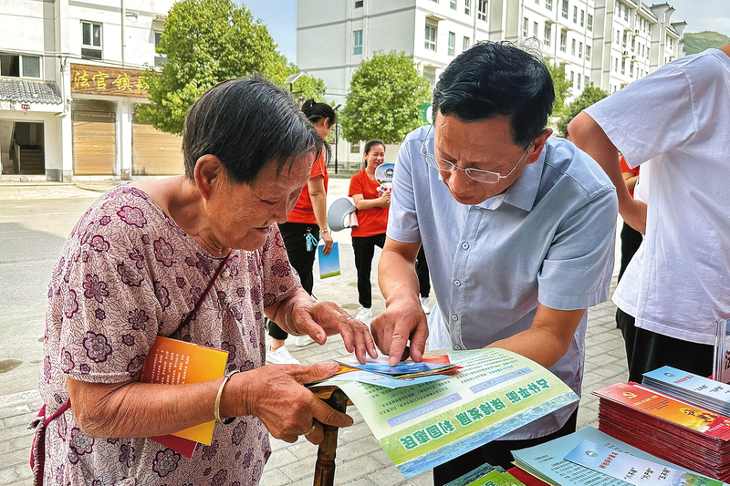 6月18日,山阳县城关街道新时代文明实践所联合县法院、妇联在丰东新区社区围绕文明婚恋观、赡养老人等主题开展普法宣传活动。