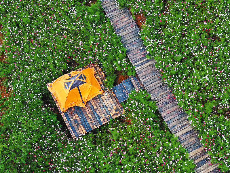 近年来,镇安县依托境内优质生态资源,大力发展民宿产业,探索文旅融合,优美的自然环境吸引了大量游客前来休闲度假,形成了多业联动、多元融合的乡村旅游新模式。图为镇安县城周边海棠山上山花烂漫、美景如画。 (本报通讯员 杨建东 摄)