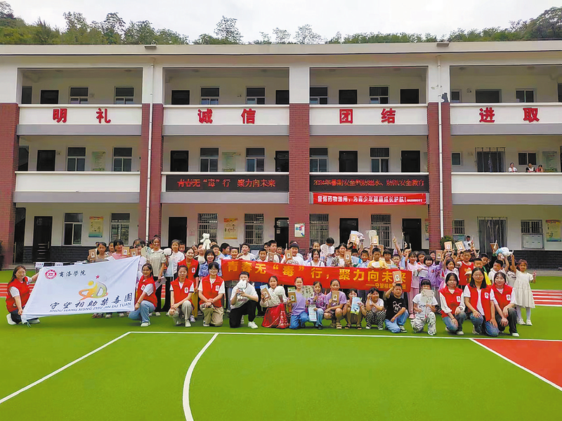 为提高青少年识毒防毒拒毒意识,7月8日至9日,由商洛学院师生成立的“守望相助禁毒团”,先后来到商州区三岔河镇九年制学校、金陵寺镇中心小学、南秦河生态公园、两河口城市运动公园等地,开展少年儿童禁毒拒毒宣讲活动,发放调查问卷、表演禁毒主题舞台剧《禁毒警钟》、宣讲禁毒知识等。(本报通讯员 李博涵 摄)