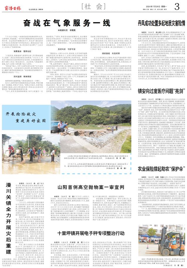 本报讯 (通讯员 赵静 张鑫)近期,丹凤县竹林关镇受强降雨影响,农作物受损严重,为弥补群众种粮损失,竹林关镇组织镇村干部迅速开展救灾工作,同时与保险公司积极对接,开展灾后定损理赔,以降低种粮户经济损失,为农民撑起了一顶助农“保护伞”。