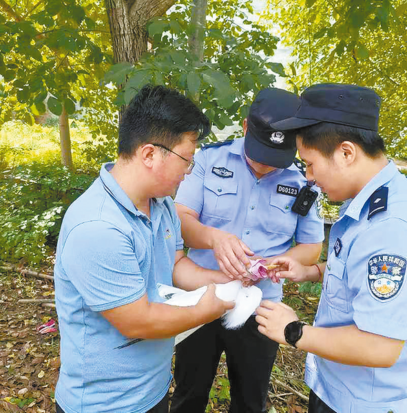 7月25日,丹凤县武关镇南坪村党支部书记李长民在巡河时发现草丛中有一只受伤的白鹭,经过镇农综站和派出所工作人员简单包扎和投喂,该白鹭已经脱离危险。目前白鹭已转交丹凤县林业局野生动物保护站进一步救治。