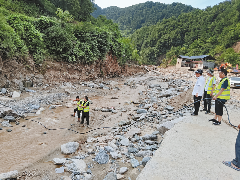 7月31日,商州区惠众农村供水有限公司组织夜村镇及牧护关镇等村级管水员,为杨斜镇砚池河村部分受灾群众接通自来水,确保当地受灾群众供水有保障。 (本报通讯员 陈 亮 摄)
