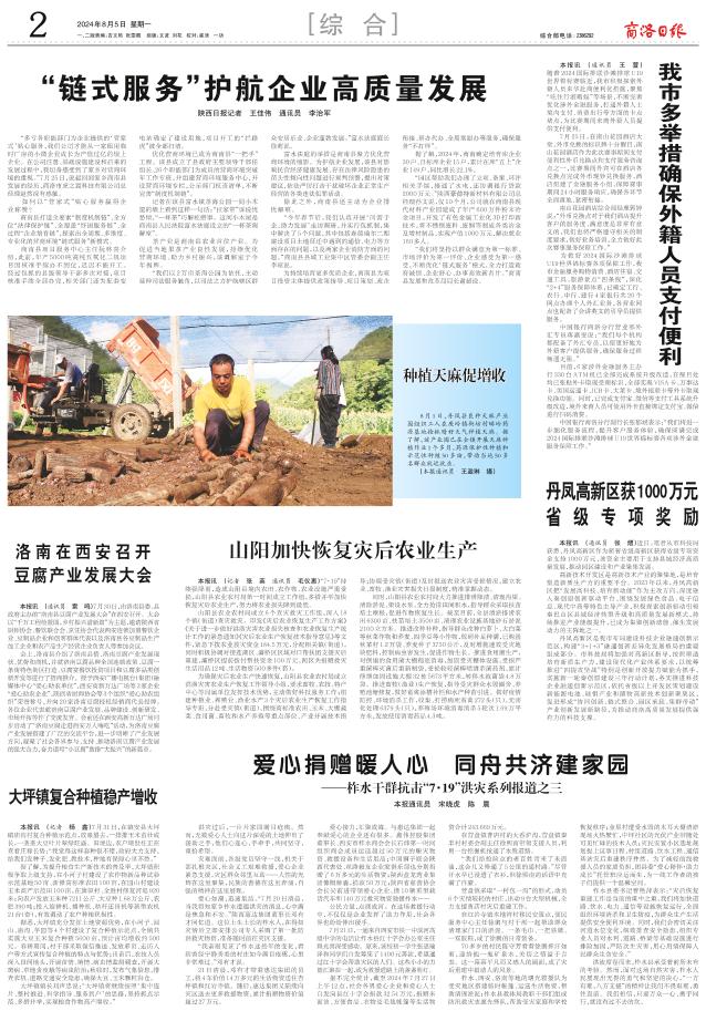 为确保灾后农业生产快速恢复,山阳县农业农村局成立洪涝灾害农业生产恢复工作领导小组,要求畜牧、农技、特产中心等局属单位发挥技术优势,主动做好科技服务工作;组建种植业、养殖业、渔业水产3个灾后农业生产恢复工作指导专班,分赴受灾镇(街道),围绕高标准农田、玉米、大棚蔬菜、食用菌、畜牧和水产养殖等重点部位、产业开展技术指导;协调受灾镇(街道)及时报送农业灾害受损情况,建立农业、畜牧、渔业灾害损失日报制度,精准掌握动态。