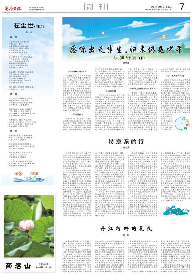 海德格尔说,诗人的天职是还乡。“南山下有我的永生永世的故乡,我的一生都在返乡的路上”。王琪一直致力于“还乡”写作,秦岭、秦东、罗敷河……并用诗歌的形式,不断书写他眼中看到的三秦大地的变化。草木荏苒,岁月悠长。在离开亲切的故乡华阴,和为生活奔波在古城西安;在得到片刻安逸之后,和马不停蹄地为理想奋斗。诗人,在异乡和故乡间徘徊。诗歌,成为故乡和异乡的传话筒和真实情感写照。在《秋末回乡记》中,诗人这样写道:“把一个背井离乡的孩子/对故乡的深情眷恋/写进月色与蛙声浸透的纸页上”。诚然,我们每个人一生都在还乡的路上,找寻属于自己的乡土乡情乐园。