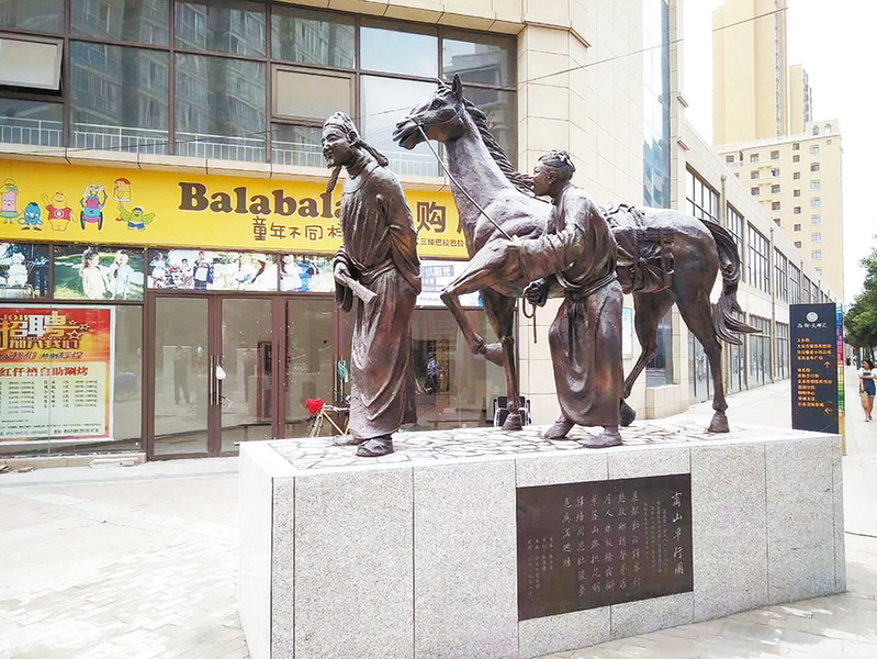 几年前,张云马接到了城市雕塑工程的订单,他与团队用时一个月,在商州区西背街东北角创作出了《商山早行图》雕塑。“这组雕塑我当时加入了自己的想法,古时候人们食不果腹,需要用衣服的纹路来表现,这样才能活灵活现。”张云马说,在创作过程中不时有群众围观,一开始他有些紧张,创作灵感会受到影响,后面慢慢习惯,努力让自己在创作中做到旁若无人,不受外界干预。有时候为了赶工期,张云马经常连夜工作,累了就靠在户外搭建的棚子里稍作休息,醒来后又继续投入创作中,正是这种坚持不懈的精神,让他克服了一个又一个的难关。