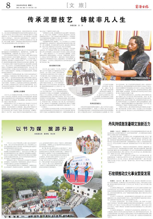 以文促旅,焕发新活力。每季度召开文保员培训会,相继开展丁兰寺、石坡遗址、张湾大白松等文保点安全检查12次,保护传承历史和文明。深入挖掘金鞍村鞑子梁、桃花岛、周湾村苍鹭园、香山村溶洞等特色资源,因地制宜打造纸房村、周湾村等“千万工程”示范村,进一步激发乡村发展的生机与活力。