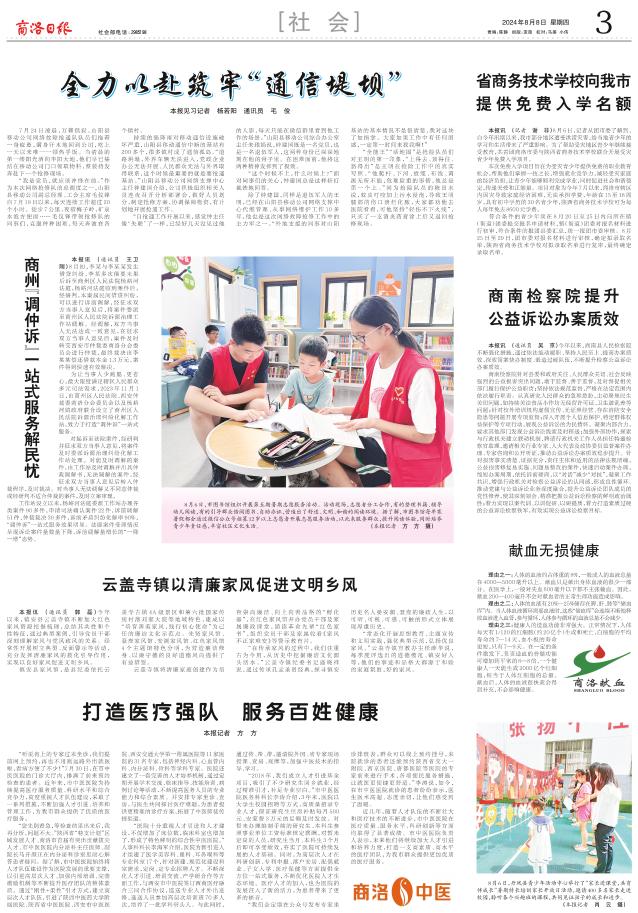 “我是党员,就应该冲锋在前。”作为本次网络抢修队的总调度之一,山阳县移动公司副总经理、工会主席毛仪锋自7月19日以来,每天连续工作超过20个小时。徒步7公里,夜宿梅子岭,矿泉水泡方便面……毛仪锋带领抢修队的同事们,克服种种困难,每天奔波在各个镇村。