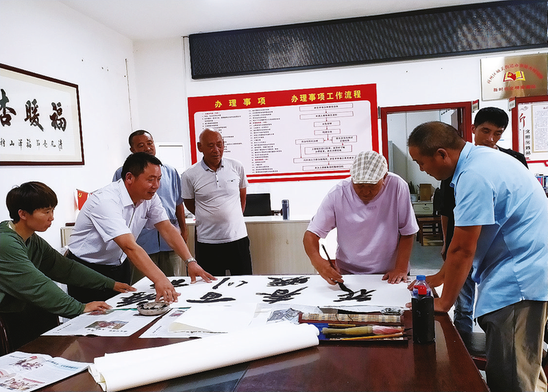 8月14日,省美协副主席、国家高级美术师、著名画家范桦来到商州区城关街道杏树园村,现场为群众书写书法作品20多幅,并就乡村文化建设作了指导交流。 (本报记者 贾书章 摄)