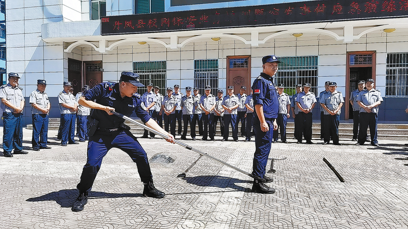 8月13日至15日,丹凤县公安局联合县教体局举办校园保安培训活动,全县约150名校园保安参加。通过此次联合培训,进一步增强了校园保安安全意识和责任意识,提升其业务水平和应急处置能力,为校园安全保驾护航。 (本报记者 谢 非 摄)