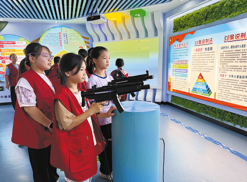 “小朋友们,你们知道检察机关是干什么的吗?”在基地的工作展示区,检察干警向小记者普及了刑事诉讼的基本流程和检察机关在刑事诉讼中承上启下的作用。警示教育区的“校园防欺凌”VR、模拟监狱、“万丈深渊”“吸毒后的你”AI换脸等互动让小记者体验到未成年人一旦迷途失足会造成的严重后果。参观途中,小记者通过听取有关预防侵害的3个真实案例分析,学会了如何避免和预防侵害的方式方法。