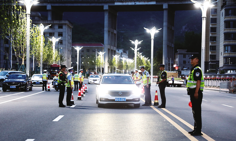 8月9日晚,商州公安巡特警联合交警设卡盘查过往车辆及人员, 严查违禁物品及突出交通违法行为。 (本报通讯员 杨丹涛 摄)