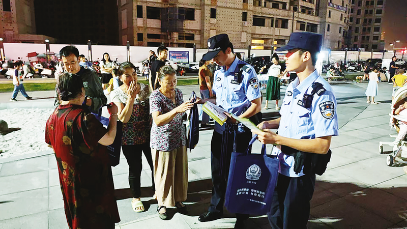 8月9日,市公安局高新分局民警在两河口城市运动公园开展安全防范知识宣传。 (本报通讯员 代金坤 摄)